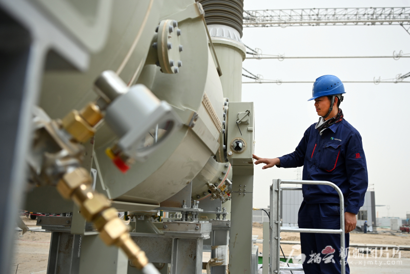 2025年4月25日,电力员工在且末750千伏变电站对电器设备进行检查。马元 摄