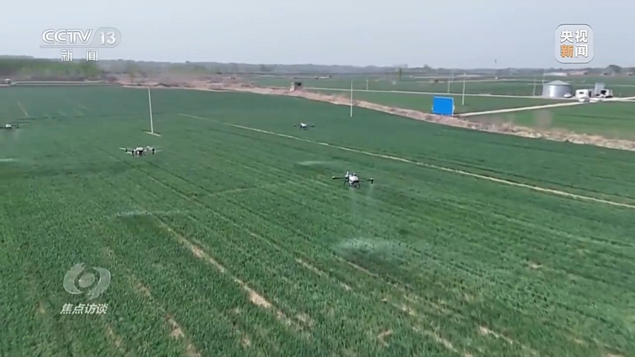 5月17日,40摄氏度高温天气到来的前两天,当地多个小麦主产县,一台台植保无人机低空掠过绿浪翻滚的麦穗,喷洒出细密的“药雨、肥雨”,为久旱的麦田送来了及时雨。