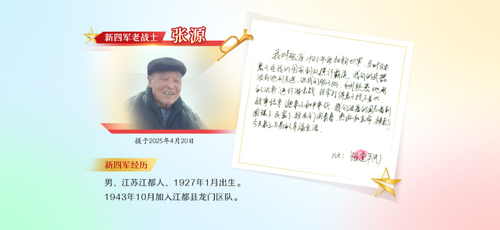 2025年5月7日,“归来仍是少年”采访组在苏州见到了新四军老战士、苏州市文联原副主席张景坤同志;没想到仅仅9天后,张老因病医治无效,在苏州逝世。这是张老生前留下的最珍贵的影像……