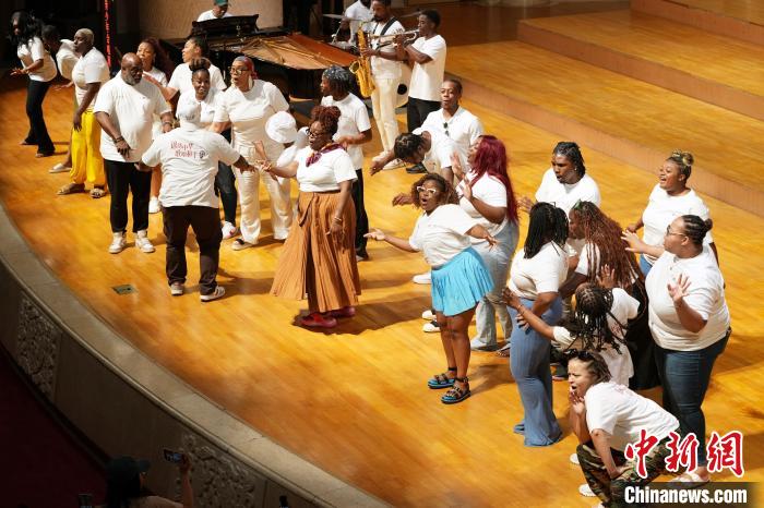 7月14日,2025年“鼓岭缘”中美青少年合唱周交流演出在北京中山公园音乐堂举行。图为美国风声合唱团演唱《祝福(Congratulations)》。 中新社记者 王紫儒 摄