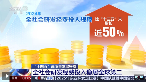 “十四五”高质量发展答卷丨2024年研发经费投入3.6万亿元 全球第二
