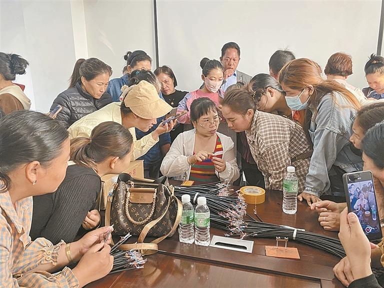 “以前外出打工,老人孩子无人照料;留在家里,收入没保障。”村民石妹的困境曾是众多留守群众的缩影。户育乡创新推出“家庭作坊代加工”模式,以劳务合作社为纽带,引入手机数据线加工等业务,让村民将原材料带回家制作,实行计件取酬。石妹加入后,既能悉心照顾体弱的公婆和年幼的孩子,每月还能增收1000多元,家庭生活质量显著提升。
