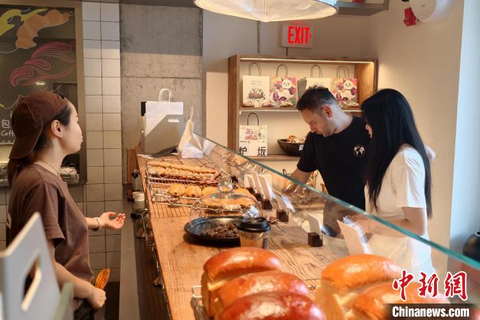 7月14日,Rocco在成都一家面包店,与店员就“剩菜盲盒”进行沟通。中新社记者 吕杨 摄