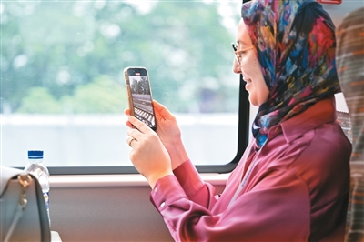走进试乘的CR400BF-GS复兴号智能提升动车组列车,26摄氏度,温度宜人,窗外渐次闪过50余种不同类型的线桥隧试验场景。整个体验之旅,线路不长,风景不少,新鲜感十足。30分钟的试乘时间里,高铁列车急速驶过中国铁道博物馆(东郊展馆)、北京朝阳动车运用所,穿行隧道、滑入弯道,在直线行驶时不断加速,乘坐平稳舒适,车厢内中外嘉宾一起感受到了中国高铁的先进技术和卓越性能,车厢外,沿途的参观者们纷纷拿起手机拍照记录。“这就是中国高铁,创新、高效、便捷!”在现场参与体验的英国博主亚当(Adam)感叹。