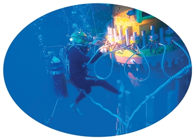 蛙人对“深海一号”二期水下结构物进行检查。中国海油供图(新华社发)