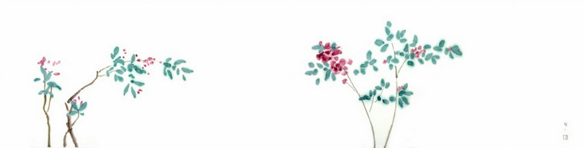 每天感觉恍如隔世,短短的一个多月时间,花語绿香、枝影流晶。虽然对自己的这一批作品不满意,但是这样的人生,有一次风雅怡人的体验,既有乐趣,好像也有一些意义。梅花、竹子、牡丹、桃花、鸢尾花,…。这一次我选择有些作品呈横着的长卷,我想它的好处在于可能会有点诗意感,信息量会大一点,像卷轴又不是卷轴,留白多,观看节奏比较舒缓,能够追求到一种唯美、典雅又不失华丽,大俗又大雅的感觉。同时,我一如既往地醉心于屋漏痕、中锋用笔之美,企图寻找到一种东方文人特有的儒雅君子风度和当代美学精神。在气质上应该很东方很NOBLE,又好像有一种未来的人文期待。
