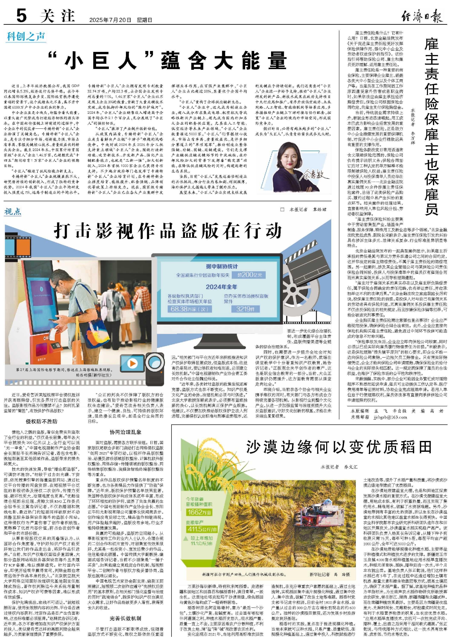 展望未来,“小巨人”企业实现良性发展的关键在于持续创新。我们还需要对“小巨人”企业进一步给予支持,推动“小巨人”企业研发的新产品、新技术成果在政府支持项目中先行应用和推广,有序开放低空经济、未来网络、人工智能、智能物联网等场景应用,多举措推动产业链上下游对接与协作配套,拓宽“小巨人”企业的境内外市场空间,形成国际竞争力。