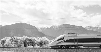 复兴号列车穿行在拉林铁路林芝段。新华社 记者丁增尼达 摄