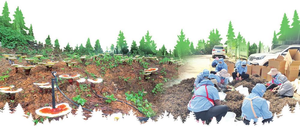 林菌产业。 本报通讯员 赵永立 摄 工人挑拣蕨菜。 本报通讯员 祁学飞 摄