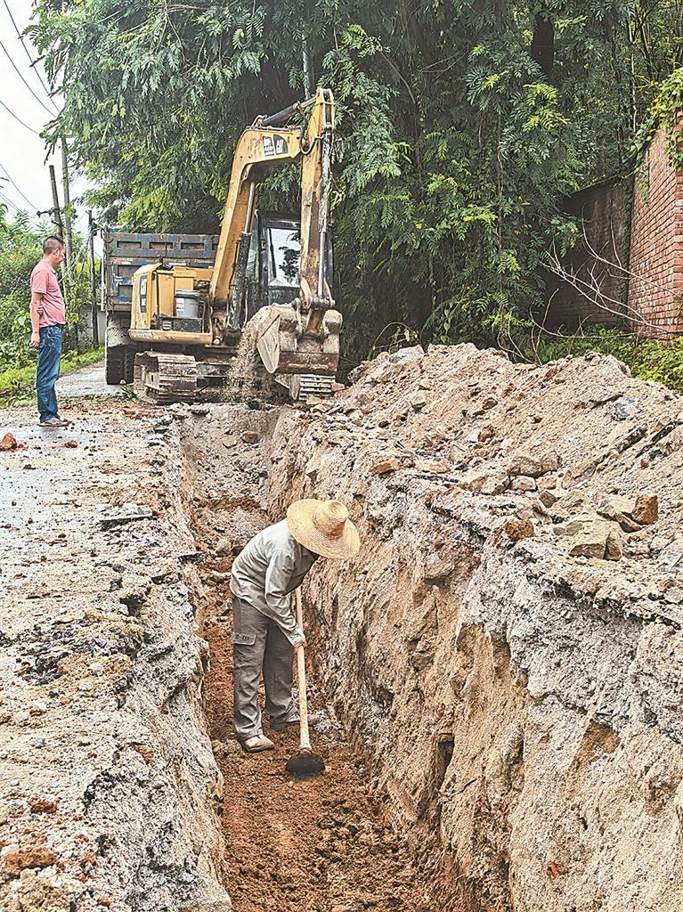 7月11日清晨,挖掘机的轰鸣声打破了芒喊村的宁静。随着村口鱼塘新排水渠的修建,这个困扰周边居民生活的“心头之患”,将得到根治。