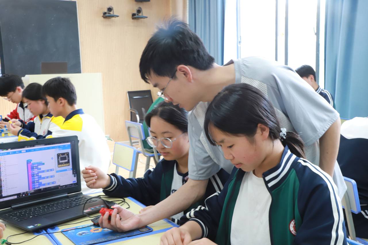 Mind+编程课、Python编程课、机器人及无人机实训课……这些课本以外的知识成了学生最抢手的课程。为激发学生潜能,培养学生的科学兴趣和科学精神,芒部中学通过科普竞赛,帮助山区学生获得更多更好的教育资源。芒部中学严格按照“三定一清两到位”工作机制落实科学实验教育,制定“走出去、引进来、重互助、强技能”的教师提升策略,累计派出10余人次前往北京、上海、南京、昆明等地培训及观摩。“要想有效指导学生备赛,我们首先得熟悉竞赛的规则与内容。”龚俊笑称,科普竞赛社团的16名老师都是“追着科技跑”的人。
