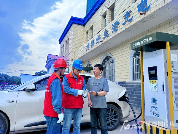 国网伊犁伊河供电有限责任公司工作人员为充电的车主介绍使用注意事项(资料图)。图/国网新疆电力有限公司提供