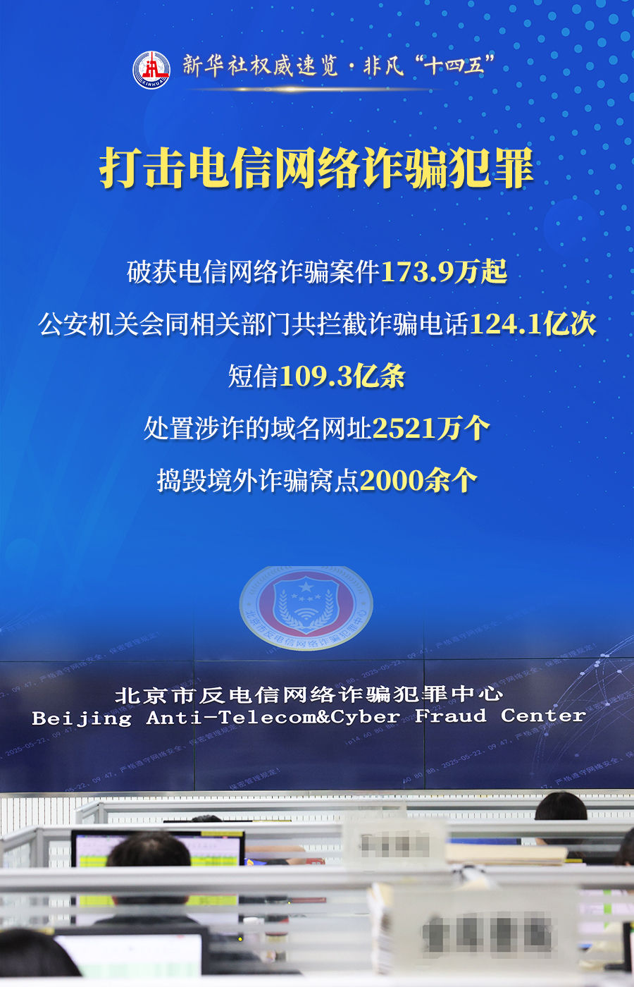 破获电信网络诈骗案件173.9万起、推动建立全国统一的人口登记管理制度、推出60多项改革新措施……23日举行的“高质量完成‘十四五’规划”新闻发布会上,公安部介绍了以高水平安全护航“十四五”规划高质量完成有关情况。通过这组海报,一起来看看。