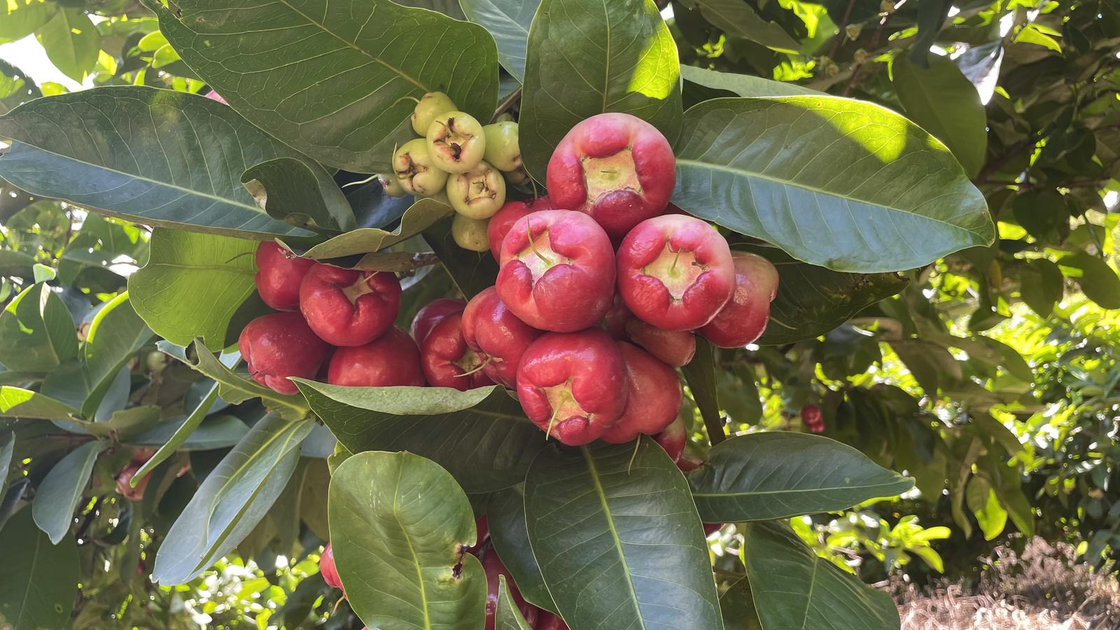 炎热的夏日,不妨走进这片缀满“红灯笼”的果园,亲手摘颗红透的莲雾,让那口清甜驱散暑气,把这份独有的清爽与惬意,都藏进舌尖的夏天里。