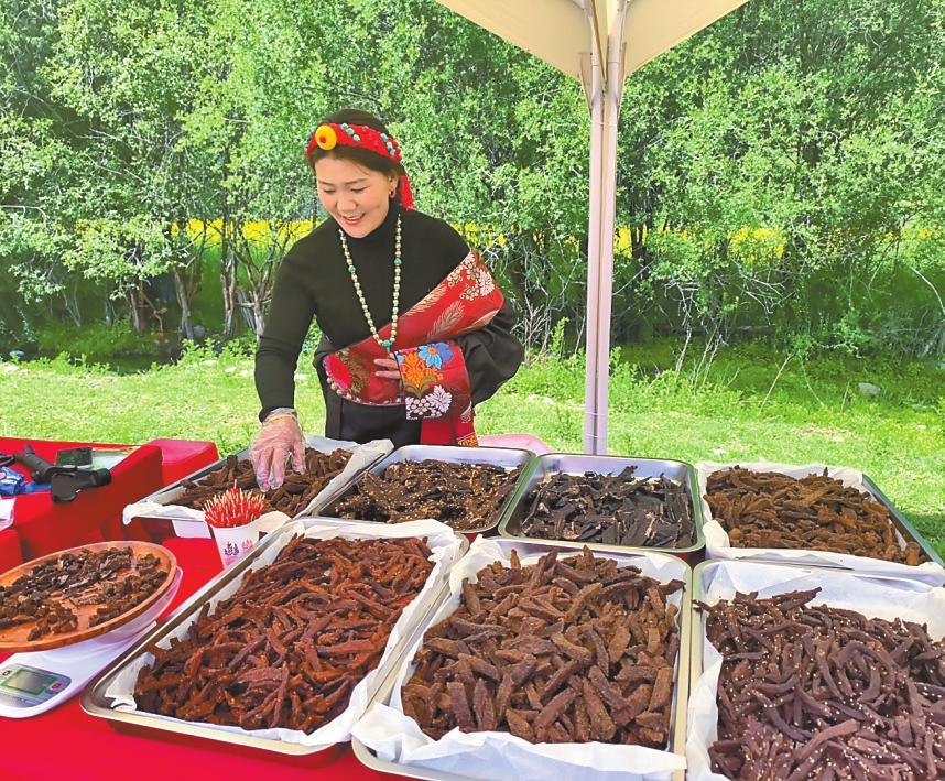 “来,尝尝!这可是正宗的牦牛肉!”近日,在香格里拉市格咱乡松茸采摘节上,香格里拉市藏雄天成仑珠养殖科技有限公司负责人拉姆央宗热情地邀请往来嘉宾品尝牦牛肉干,“香格里拉牦牛肉味道鲜美、香味独特,是高蛋白、低胆固醇食物,还获得了国家地理标志保护产品认定呢。”