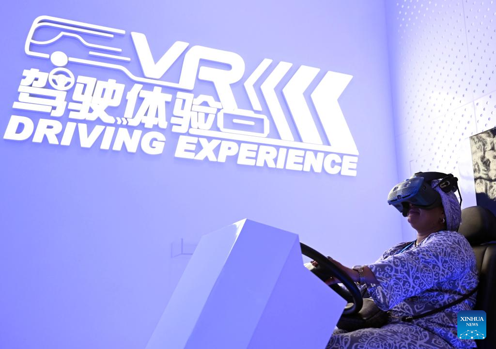 A participant of the Shanghai Cooperation Organization (SCO) Media and Think Tank Summit tries VR driving at Zhengzhou Yutong Bus Co., Ltd. in Zhengzhou, central China's Henan Province, July 24, 2025. The SCO Media and Think Tank Summit is held in Zhengzhou from July 23 to 27. Participants are invited to visit various locations in Henan during the summit. (Xinhua/Li Jianan)