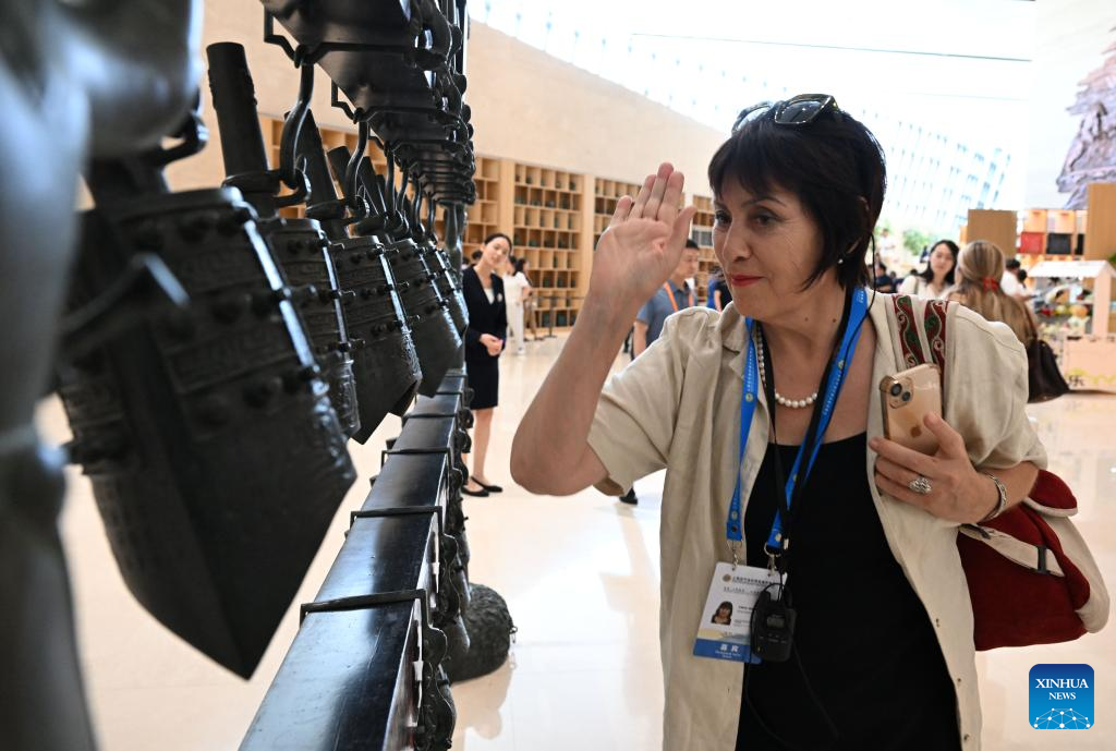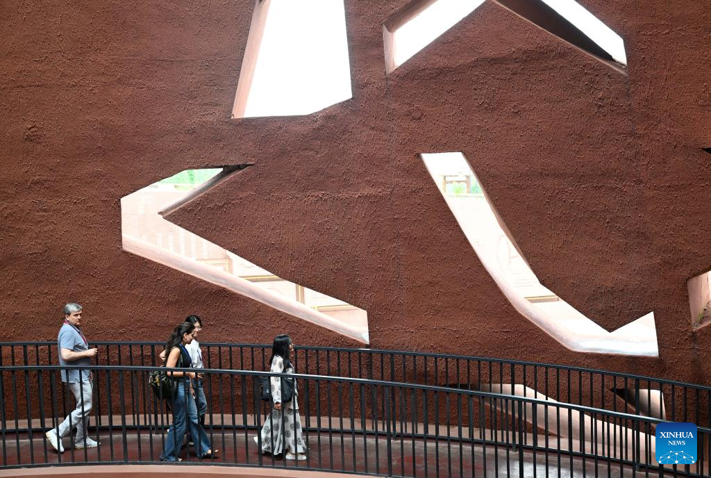 Participants of the Shanghai Cooperation Organization (SCO) Media and Think Tank Summit visit Yangshao Culture Museum in Mianchi County of Sanmenxia, central China's Henan Province, July 23, 2025. The SCO Media and Think Tank Summit is held in Zhengzhou from July 23 to 27. Participants are invited to visit various locations in Henan during the summit. (Xinhua/Hao Yuan)