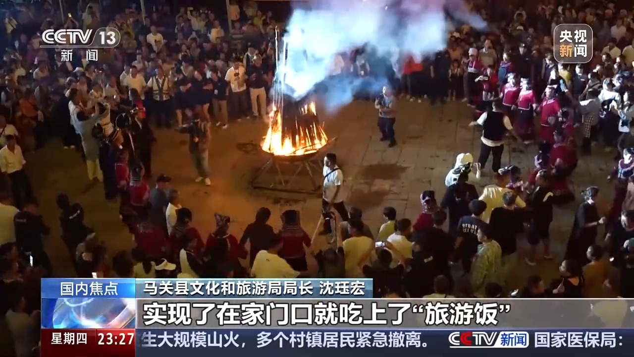 马关县文化和旅游局局长 沈珏宏:我们马关县锚定“山水田园”目标定位,通过文化活态传承、节庆跨境联动,通过乡村民歌会,还有火把节等节庆活动,也让来到这里的游客体验感和满意度获得了提升。在旅游增收的同时,也让千余户的边民们,实现了在家门口就吃上了“旅游饭”,真正实现边民富、边关美、边境稳、边防固的美好愿景。