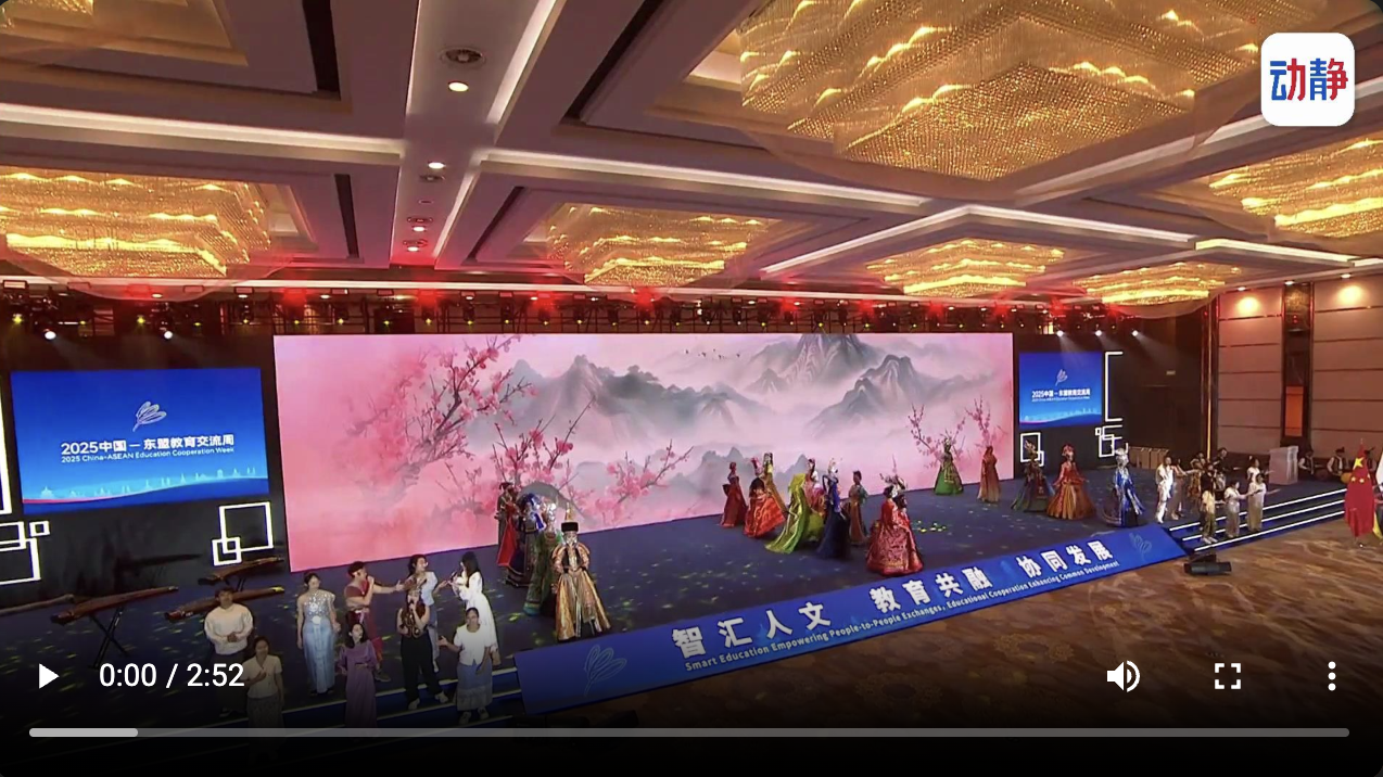 中国—东盟教育交流周开幕式现场,各国青年一起唱响《好花红》