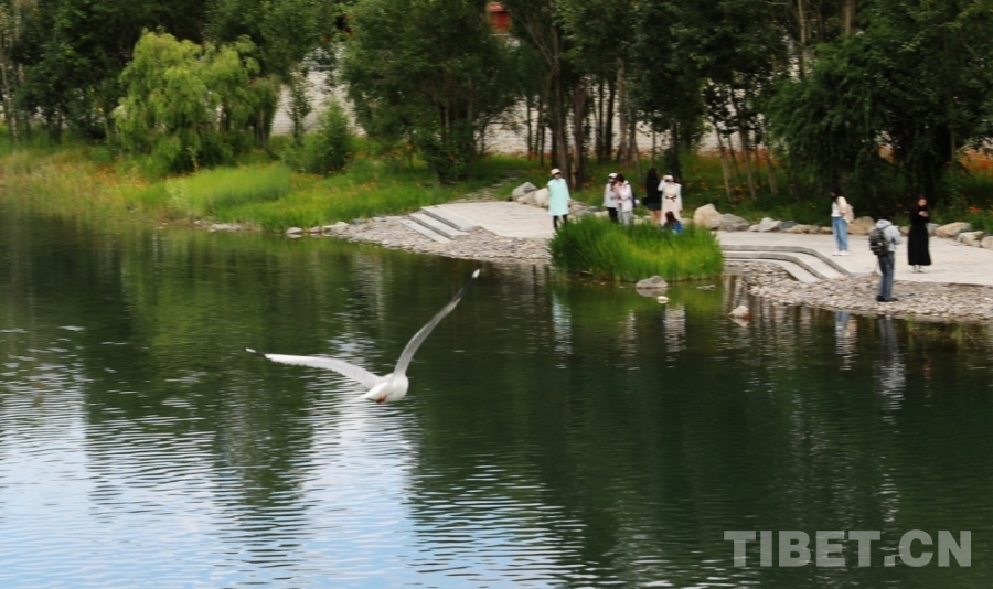 波光滟潋,水鸟翱翔,林木丰茂,花朵绽放……7月25日,在西藏自治区拉萨市两岛内河绿色生态廊道工程新建的廊桥附近,高原的夏日美景令人心旷神怡。