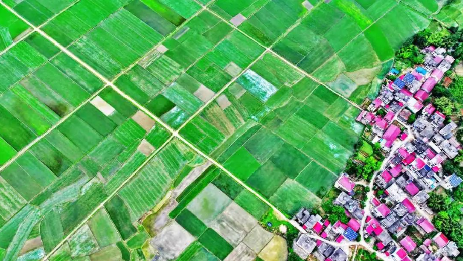 4月26日,江西省吉安市永丰县八江乡高家村,早稻长势良好,呈现一幅绿色田园画卷。刘浩军摄(中经视觉)