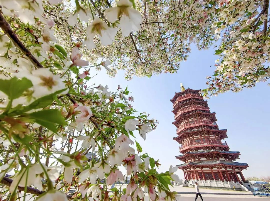 3月26日,河南省洛阳市隋唐大运河文化公园樱花绽放,吸引市民前来拍照打卡。张怡熙摄(中经视觉)