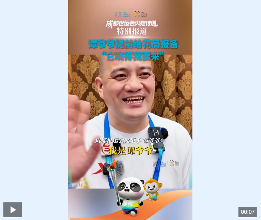 谭爷爷说当火炬手给花花打过招呼了