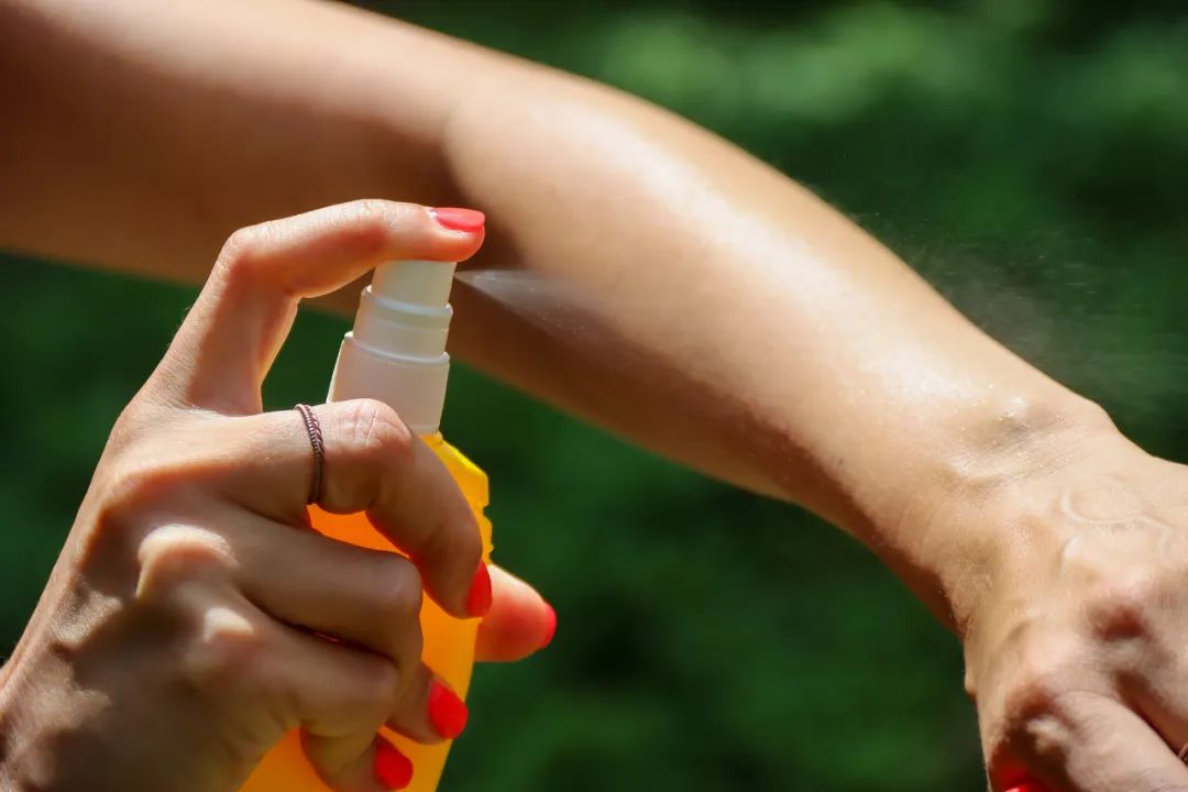 可选含有避蚊胺、驱蚊酯、派卡瑞丁、精油类(如柠檬桉)等成分的产品,按产品说明涂抹或喷洒在暴露的皮肤表面,但要注意避免接触眼睛和嘴巴,儿童使用时应选低浓度产品,并在成人监护下使用。