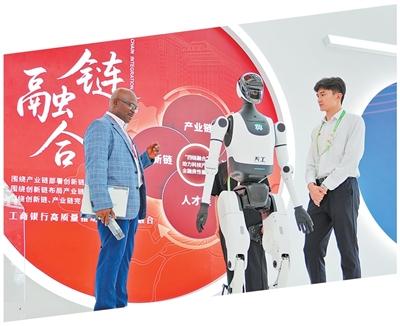 7月16日,观众在第三届中国国际供应链促进博览会上了解人形机器人。 唐 克摄(影像中国)