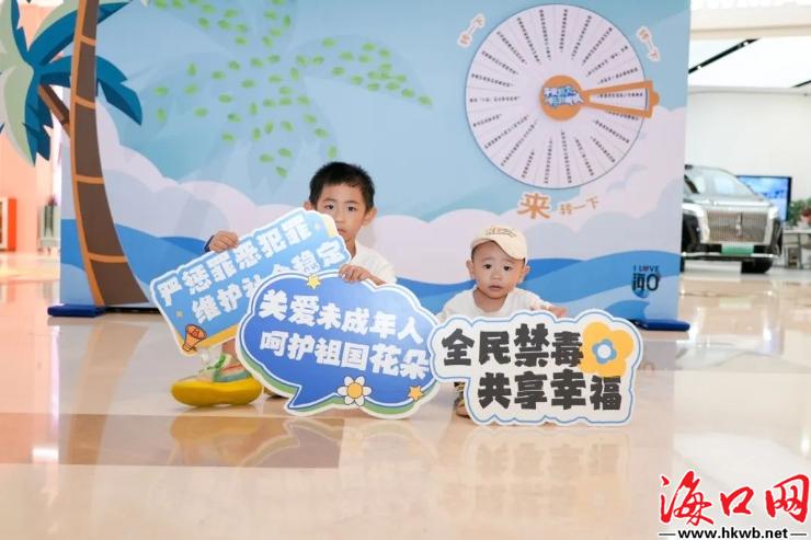 现场还布置了多处宣传展板,集中展示未成年人保护、禁毒、扫黑除恶、打击非法集资、打击走私等综合治理内容。活动中,主持人围绕以上内容展开现场提问,观众踊跃举手抢答,赢取景区门票、椰味零食等奖品。禁毒主题的椰壳大转盘互动区也为市民游客朋友准备了多份“椰城福袋”、“海口旅游”定制文化衫等特色奖品,备受参与者青睐。