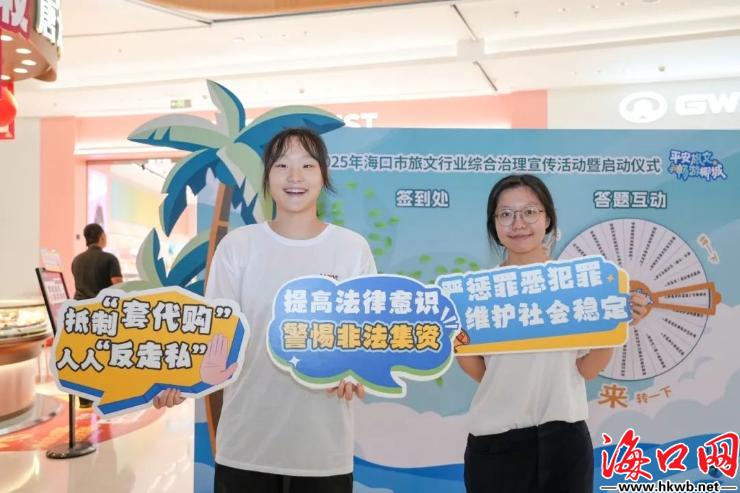 平安旅文,畅游椰城!7月26日上午,由海口市旅游和文化广电体育局主办,秀英、龙华、琼山、美兰四个区旅游和文化体育局协办,海口报业网络传媒有限公司承办的2025年海口市旅文行业综合治理宣传活动暨启动仪式在龙华区友谊·南海城举行。活动聚焦未成年人保护、禁毒、扫黑除恶、打击非法集资、打击走私等重点工作,通过宣传展示、知识问答、互动游戏等方式,营造浓厚的宣传氛围,持续提升行业规范与群众安全意识。