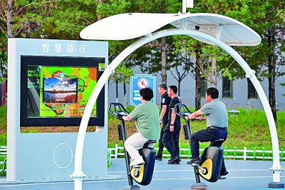市民在内蒙古鄂尔多斯市智慧体育公园健身。王正摄/光明图片
