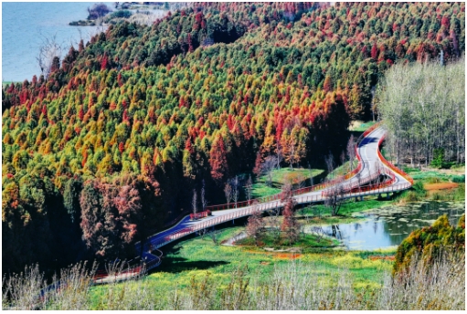 108公里滇池绿道是品质提升的典范。这条“翡翠项链”采用“减法设计”,沿山体设生态缓冲带、湿地段架高架栈桥、途经村落保留青石板路,最大限度减少对自然的扰动。绿道串联36条河道、58片湿地和46个美丽乡村,市民可骑行穿越“山、水、林、田、湖、草”生态画卷,让“五百里滇池”的诗意变为可感的生活场景。