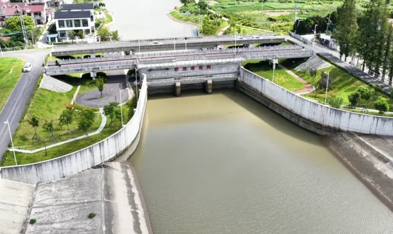 7月28日下午起,崇明三岛38座沿江水闸根据市防汛办调度指令,开始预排预降内河水位。“上海崇明”微信公众号 图
