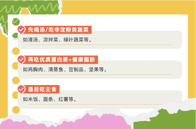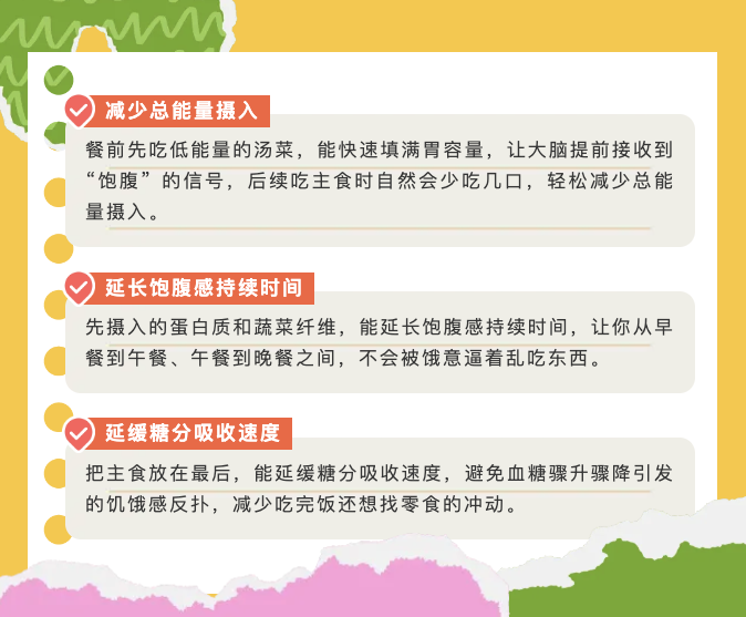 你知道吗?吃饭时先吃什么、后吃什么,其实对健康影响不小!合理的饮食顺序,能帮助我们更好地消化吸收、稳定血糖,还能控制体重。