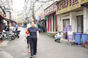 “红袖标”志愿者马莲梅在日常巡逻。 盘龙区融媒体中心供图