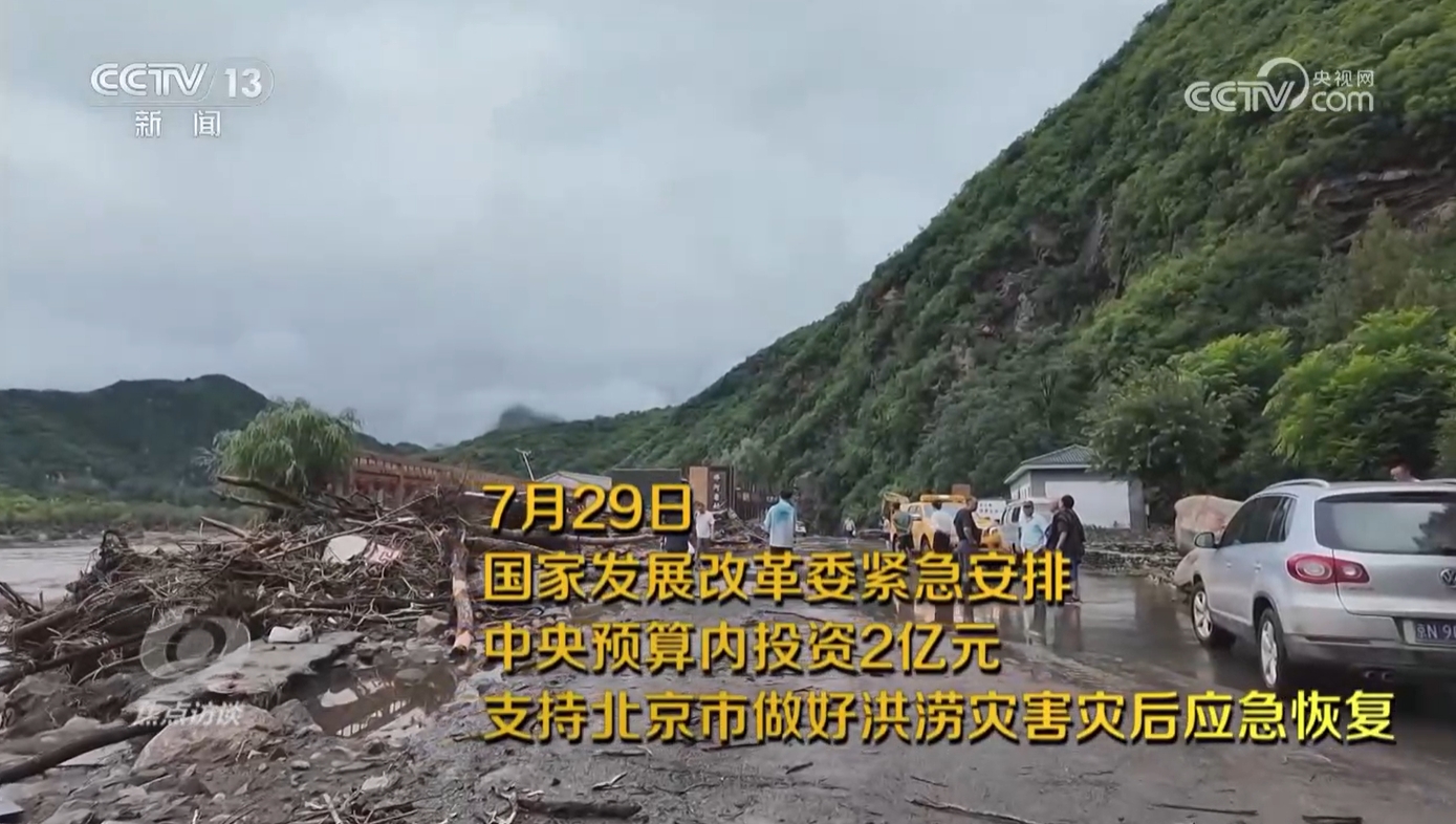 应急管理部救灾和物资保障司副司长王一鸣:“财政部、应急管理部紧急预拨3.5亿元中央自然灾害救灾资金,重点支持河北、天津、北京等九个省区市做好抢险救灾和群众救助工作。应急管理部也会同国家粮食和物资储备局增调了折叠床、毛巾被、毛毯、应急照明灯等4.3万件中央救灾物资,会同中国红十字会,向灾区援助了2000套的家庭应急箱。”