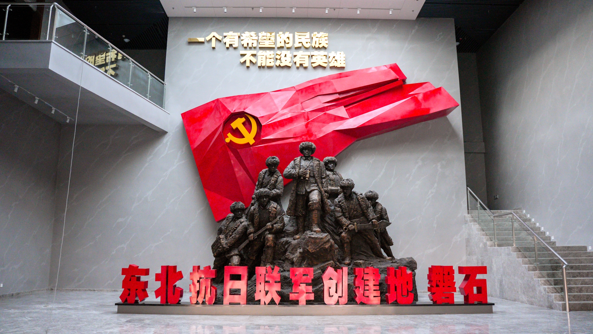 磐石市抗日斗争纪念馆内庄严肃穆,雕像彰显抗联精神。 磐石市抗日斗争纪念馆供图