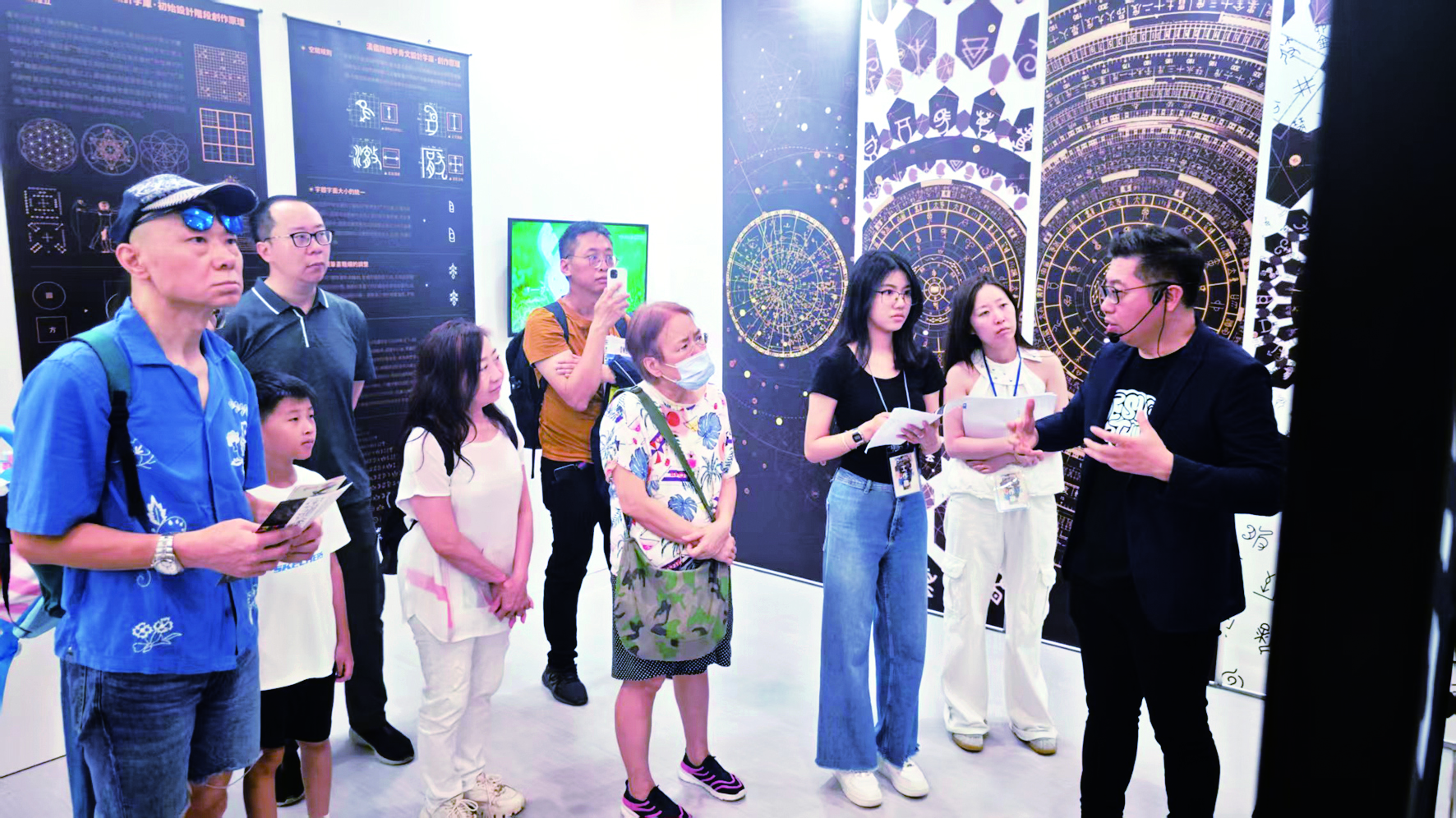 “了不起的甲骨文”香港展策展人陈楠(右一)为观众导览 受访者供图