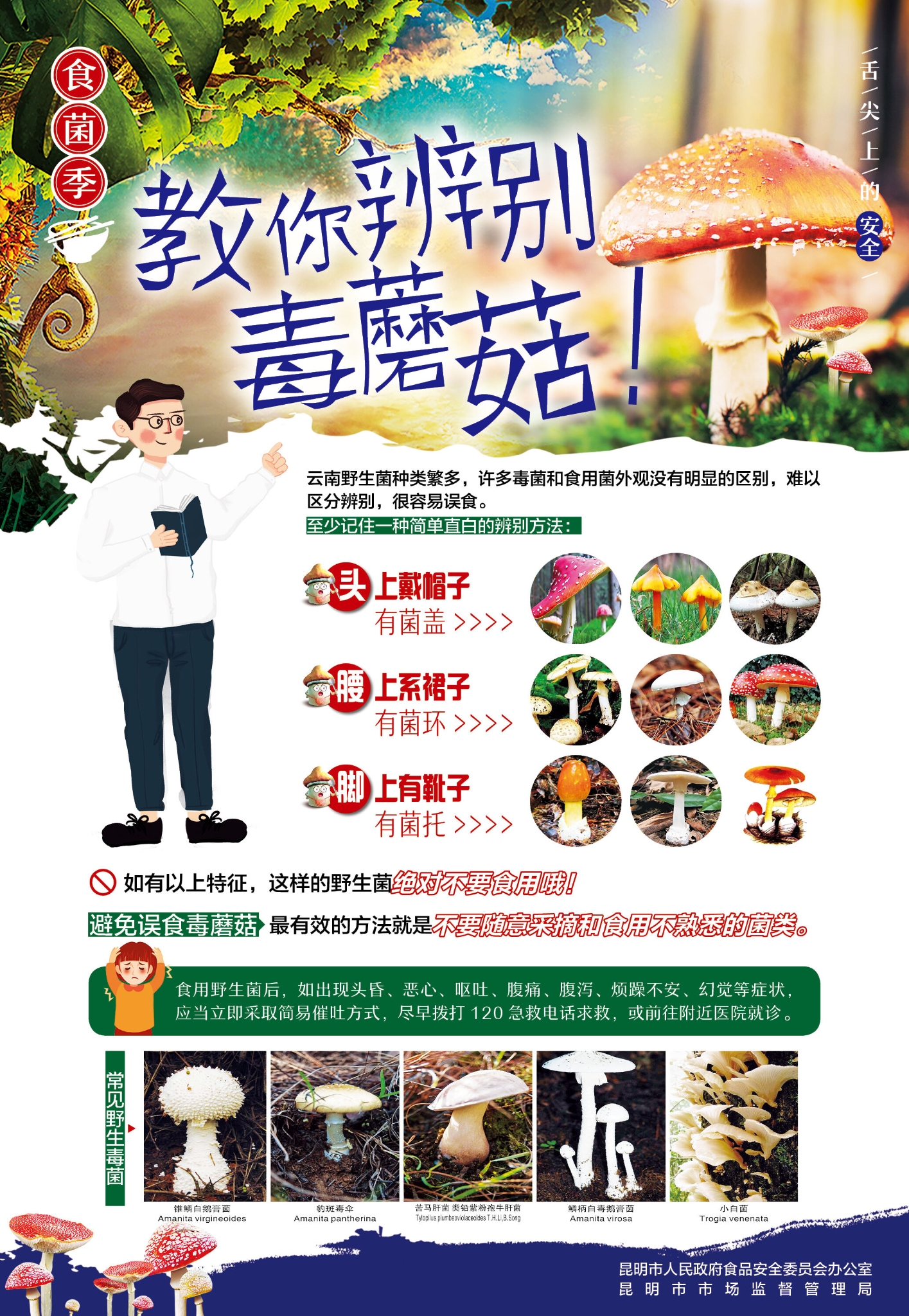 雨季来临,野生菌即将进入繁殖生长和销售旺季。为提高广大人民群众食品安全意识,普及野生菌中毒防控知识,防范误采、误食有毒野生菌中毒事件发生,保障人民群众身体健康和生命安全,昆明市政府食品安全办发布预警如下: