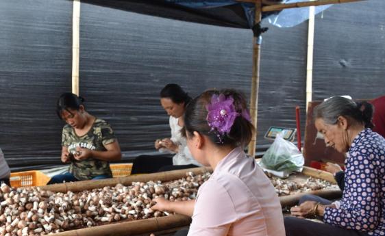 五合乡务工群众分拣姬松茸。云南日报通讯员杨静莹/摄