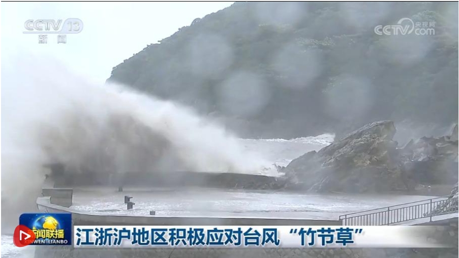 央视网消息(新闻联播):今年第8号台风“竹节草”7月30日登陆,上海、浙江、江苏等地积极应对强风雨天气。