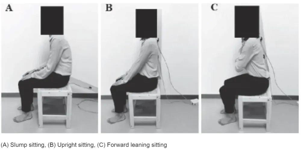 △(a)懒汉坐姿(b)直立坐姿(c)前倾坐姿