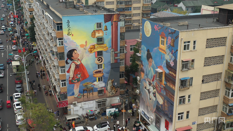 西北角标志性的楼梯墙绘(央广网记者 周思杨 摄)