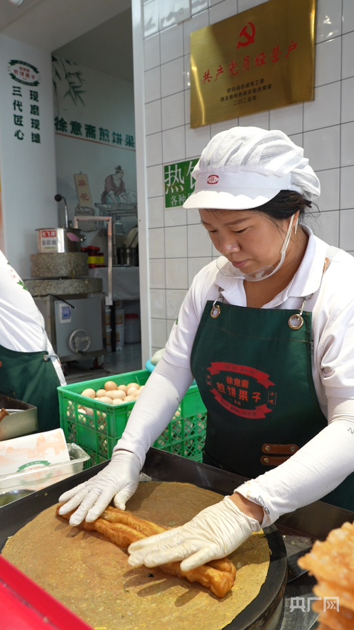 商户正在制作煎饼馃子(央广网记者 周思杨 摄)