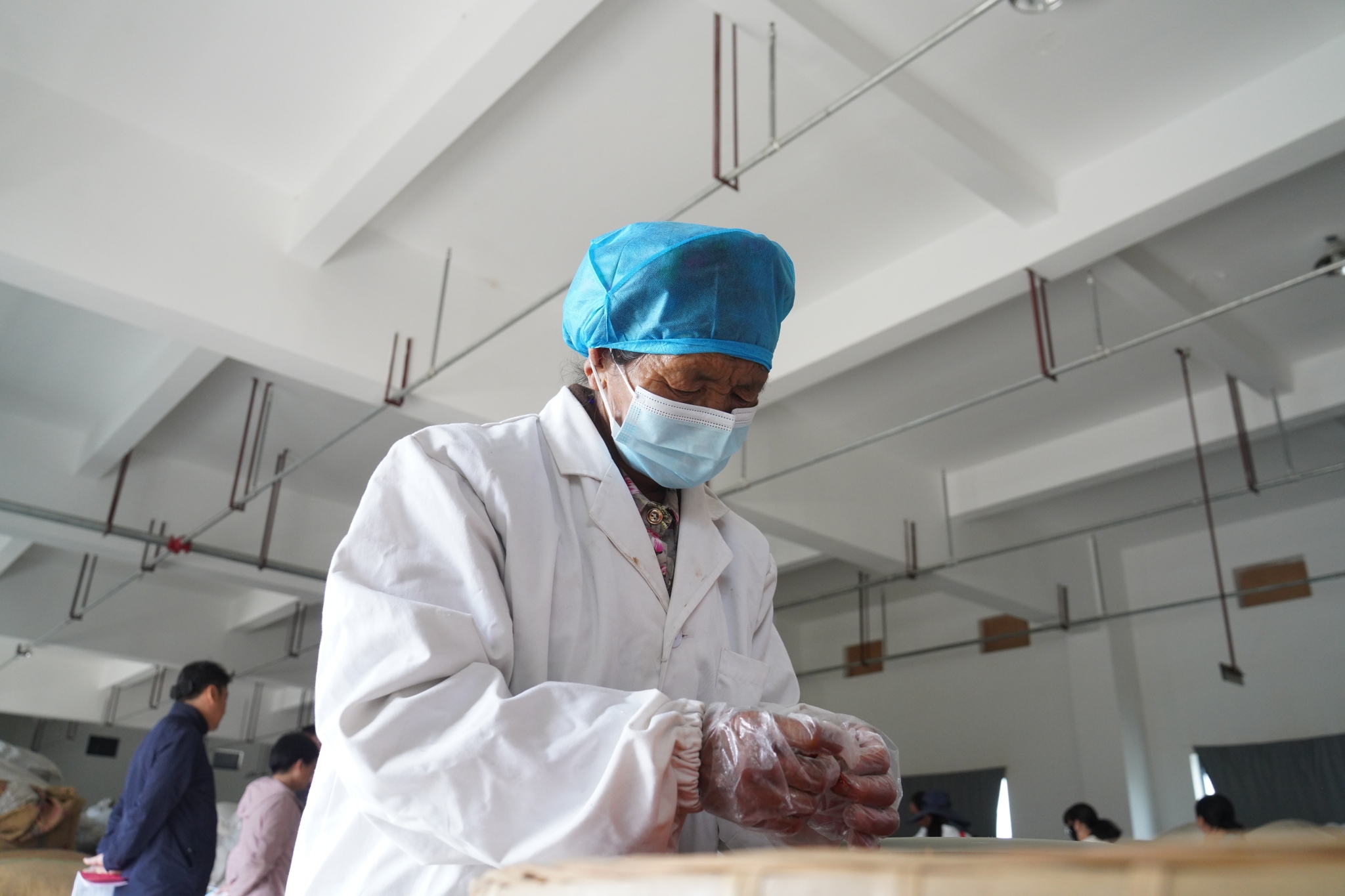 ▲在曲松镇琼嘎村藏药材种植加工专业合作社,当地村民在家门口就业,正在筛选藏药材。中国网记者 胡俊 摄