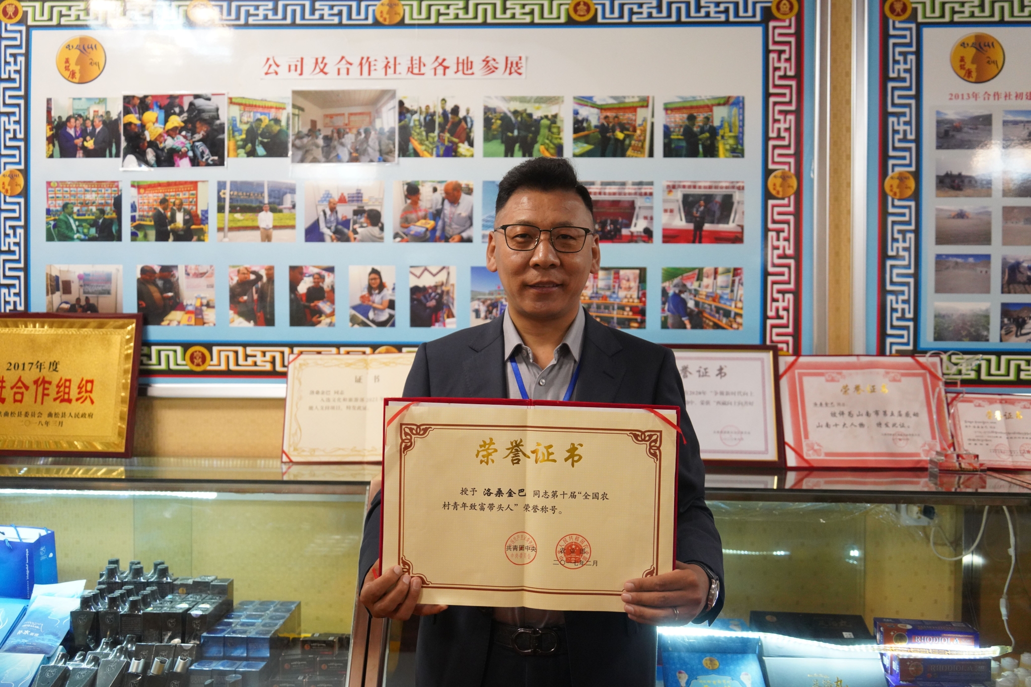 ▲洛桑金巴手捧“全国农村青年致富带头人”荣誉称号证书。中国网记者 胡俊 摄