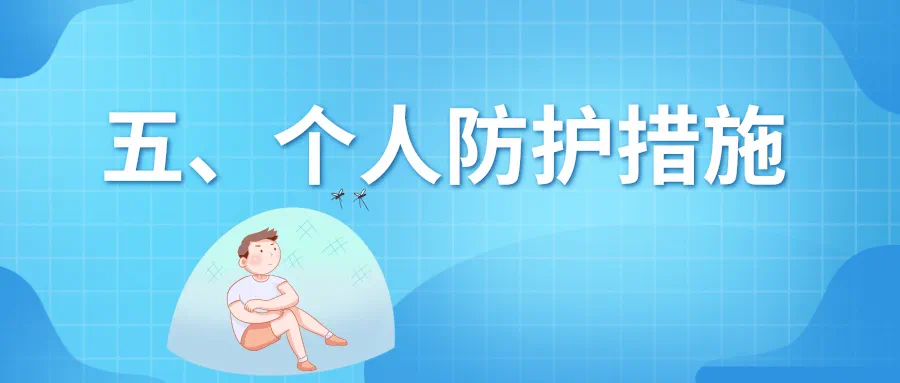 外出时穿浅色长袖衣裤,使用含避蚊胺(DEET)、驱蚊酯等有效成分的驱避剂。