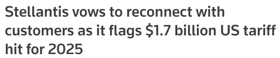 另一家美国汽车行业巨头斯泰兰蒂斯7月29日则表示,美国关税政策将使该公司在 2025 年损失约17 亿美元。而早在汽车关税生效后不久,斯泰兰蒂斯就已宣布裁撤其五家美国工厂的900名员工,以节约成本。
