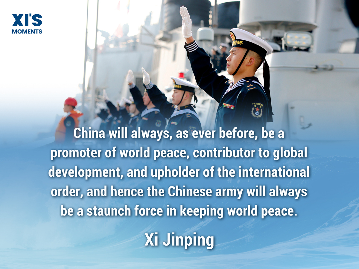 President Xi Jinping has stressed on various occasions that China will unwaveringly stay on the path of peaceful development, highlighting the Chinese military's significant role in safeguarding world peace. Let's revisit some of his quotes as the 98th anniversary of the founding of the Chinese People's Liberation Army is commemorated on Friday.